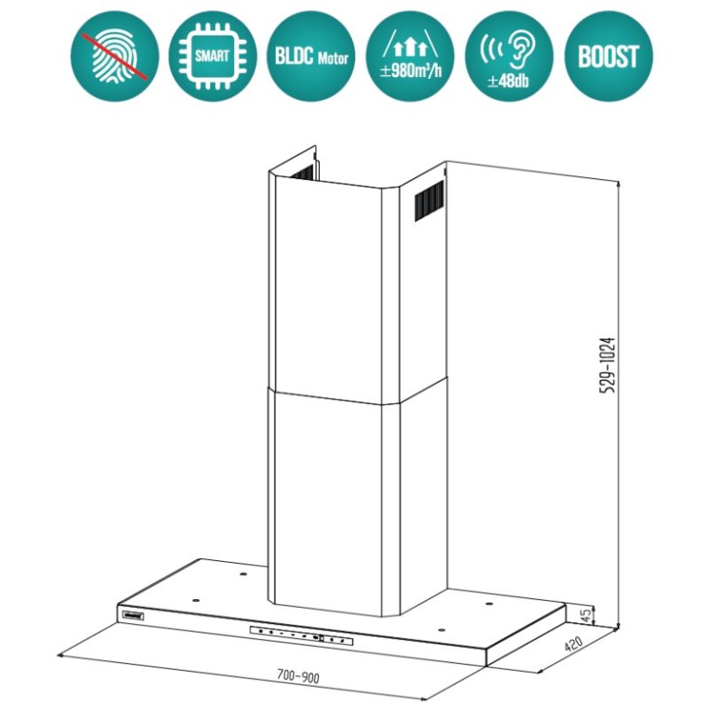 - Kích thước sản phẩm: 900R x 420S x 529-1024C mm